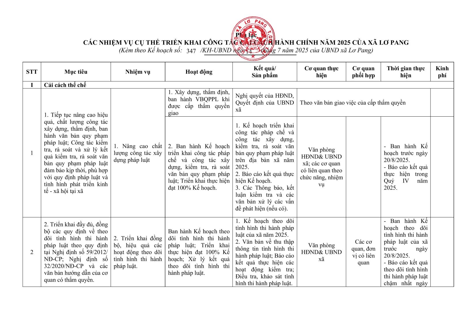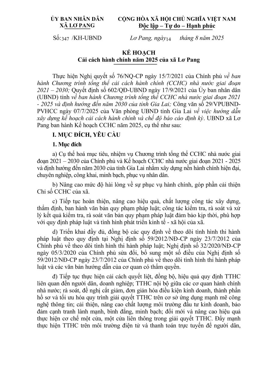 Thứ năm, 11/09/2025 | 13:47 A- A A+ | Kế hoạch số 347/KH-UBND ngày 18/8/2025 Cải cách hành chính năm 2025 của xã Lơ Pang Chia sẻ Đọc bài Lưu