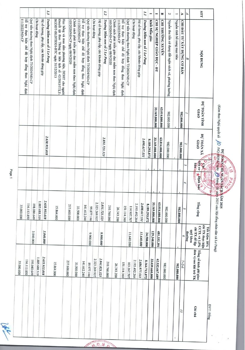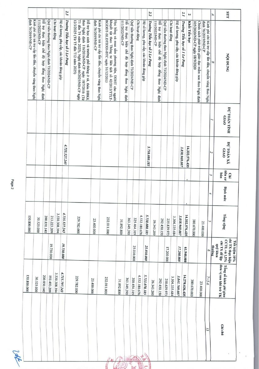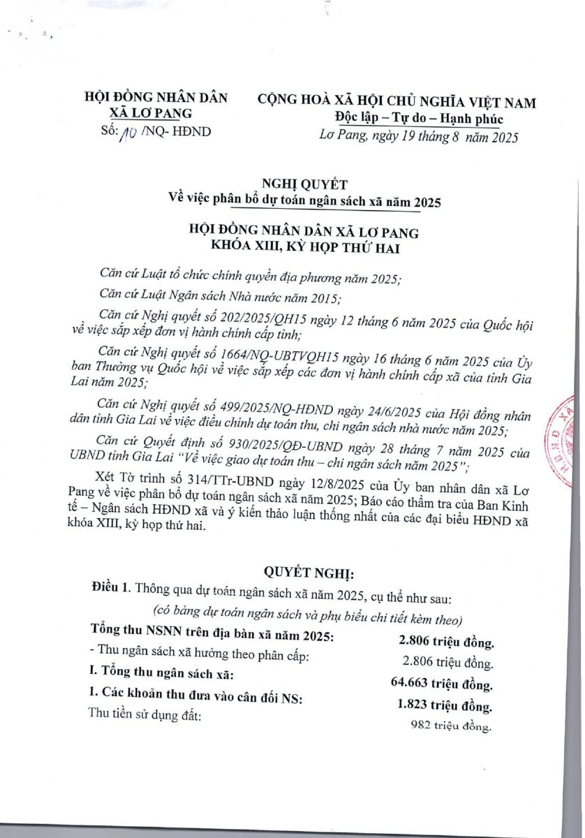 Thứ tư, 15/10/2025 | 09:22 A- A A+ | Nghị quyết số 10/NQ-HĐND ngày 19 tháng 8 năm 2025 của hội đồng nhân dân xã Lơ Pang về việc phân bổ dự toán ngân sách xã năm 2025 Chia sẻ Đọc bài Lưu