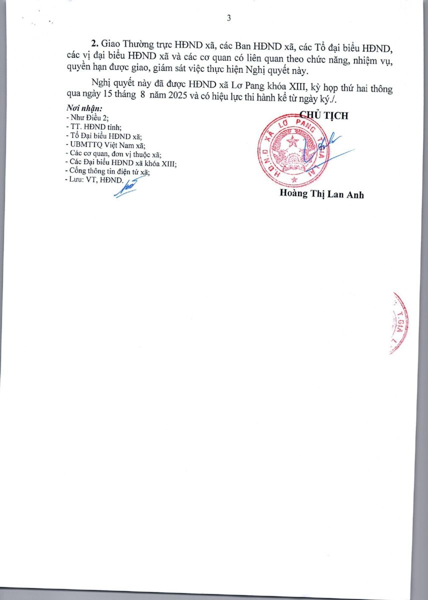 Nghị quyết số 04/NQ-TTHĐND ngày 24 tháng 7 năm 2025 của Hội đồng nhân dân xã Lơ Pang về việc thành lập tổ đại biểu HĐND xã và chỉ định Tổ trưởng, Tổ phó của Tổ đại biểu HĐND xã khóa XIII, nhiệm kỳ 2021-2026