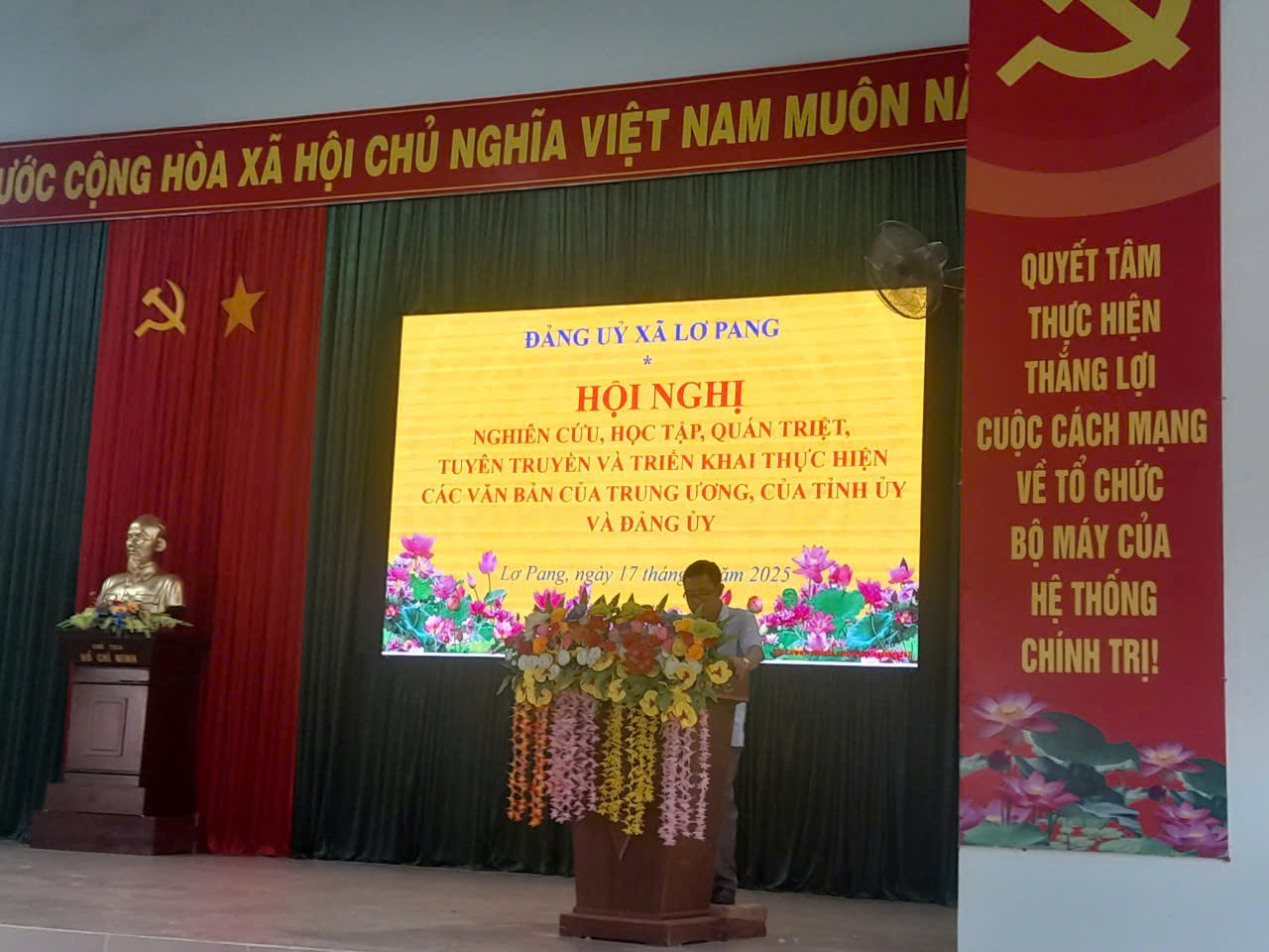 Ngày 17/9/2025, tại Nhà Văn hóa xã, Đảng ủy xã Lơ Pang đã tổ chức Hội nghị nghiên cứu, học tập, quán triệt, tuyên truyền thực hiện các văn bản của Trung ương, Tỉnh ủy và Đảng ủy.
