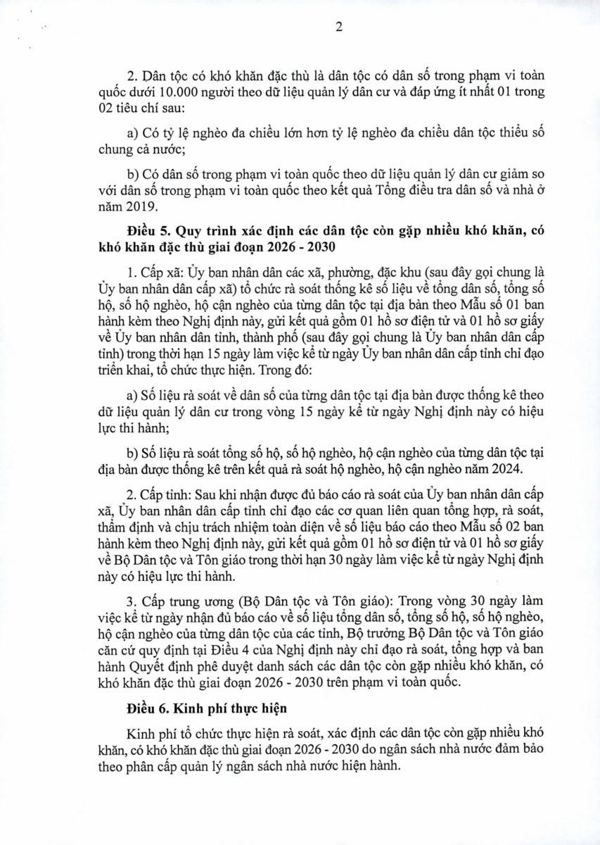 Thứ năm, 16/10/2025 | 13:58 A- A A+ | Nghị định số 255/2025/NĐ-CP ngày 29 tháng 9 năm 2025 của Văn phòng chính phủ về việc Xác định các dân tộc còn gặp nhiều khó khăn, có khó khăn đặc thù giai đoạn 2026 - 2030 Chia sẻ Đọc bài Lưu