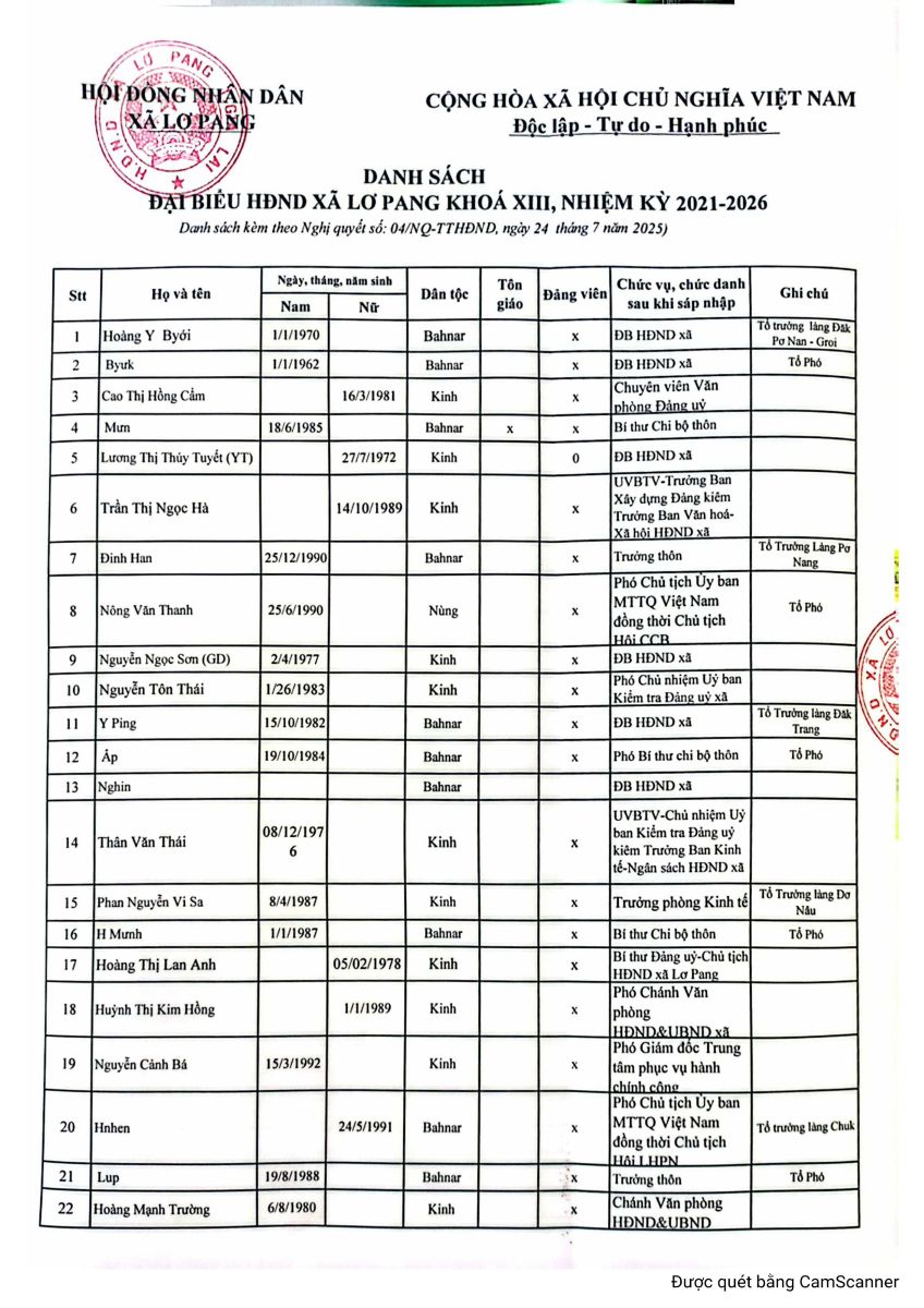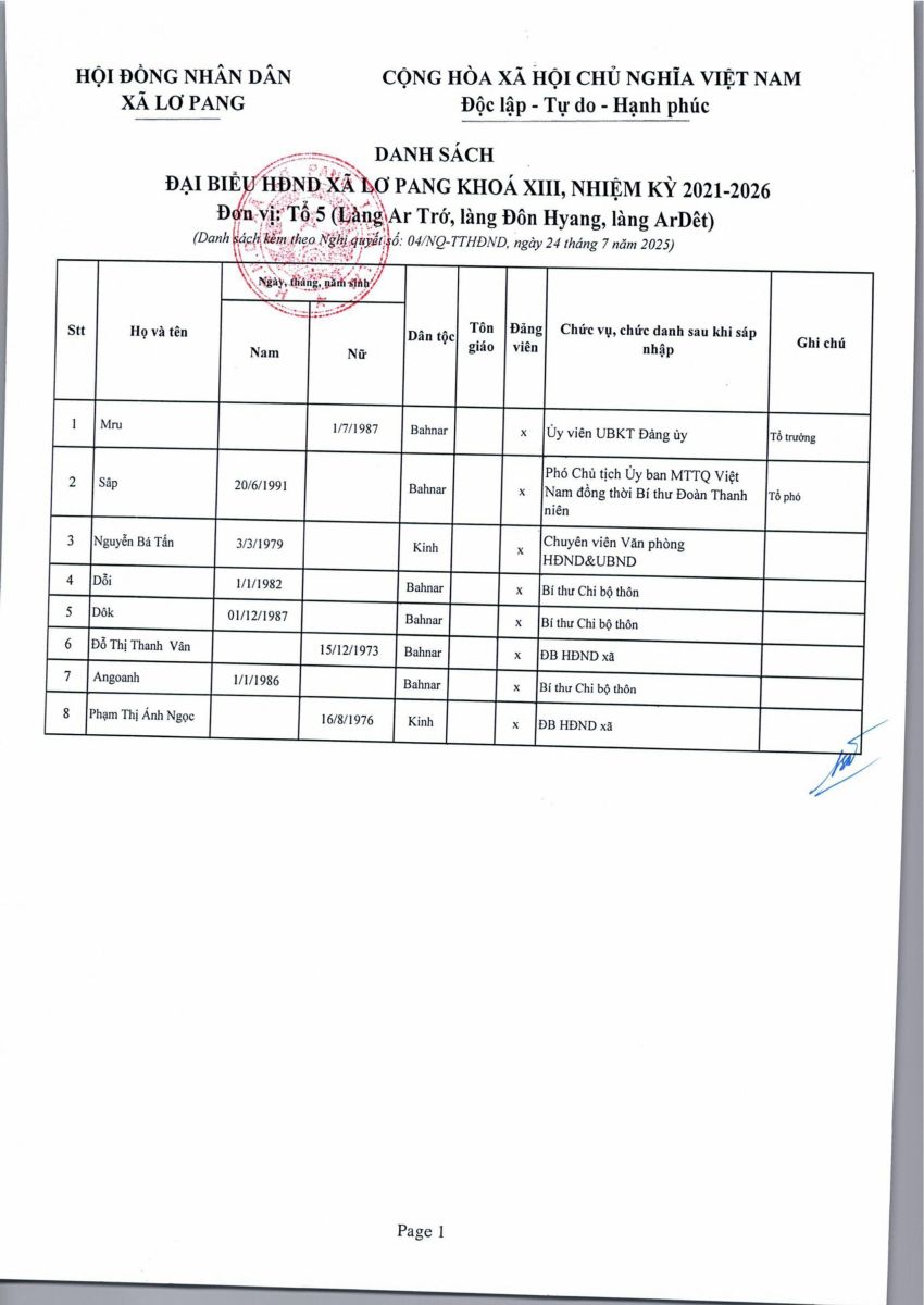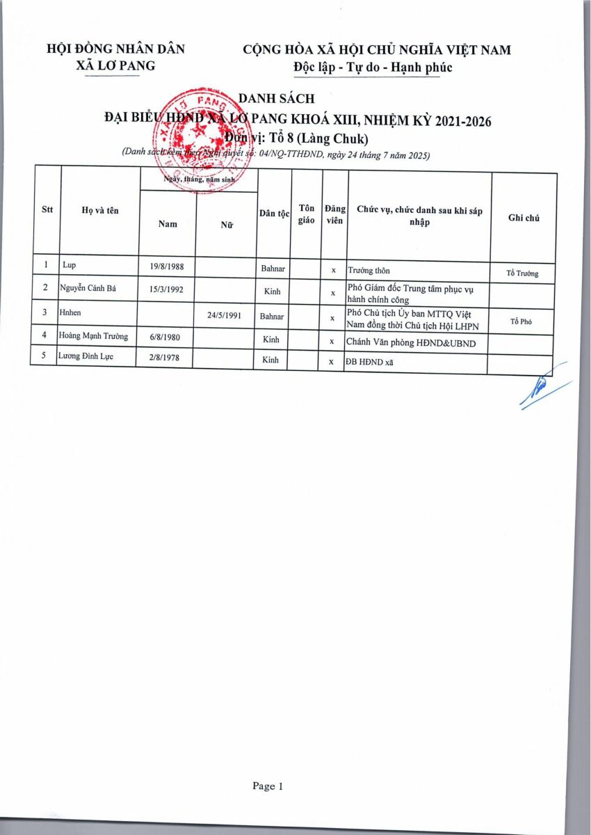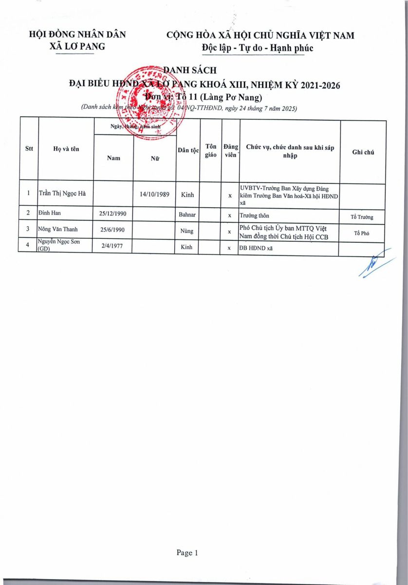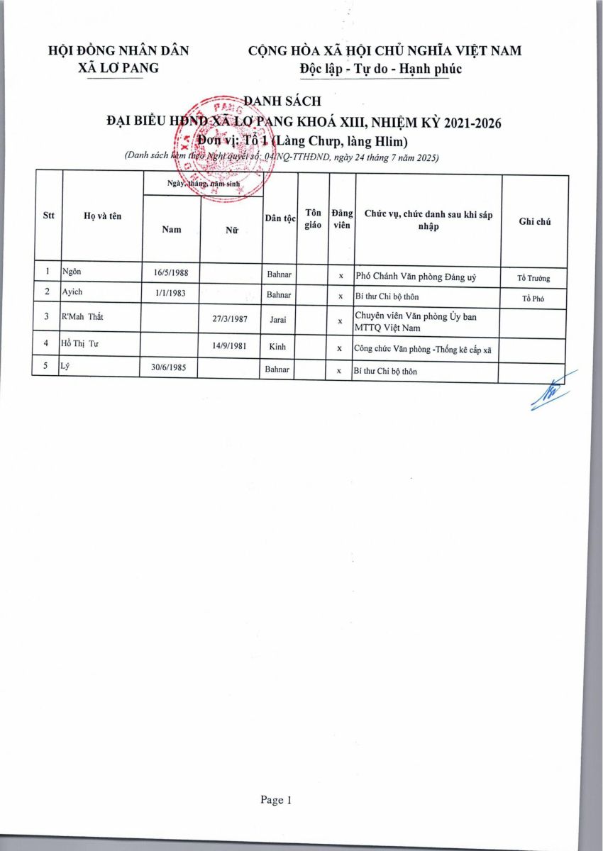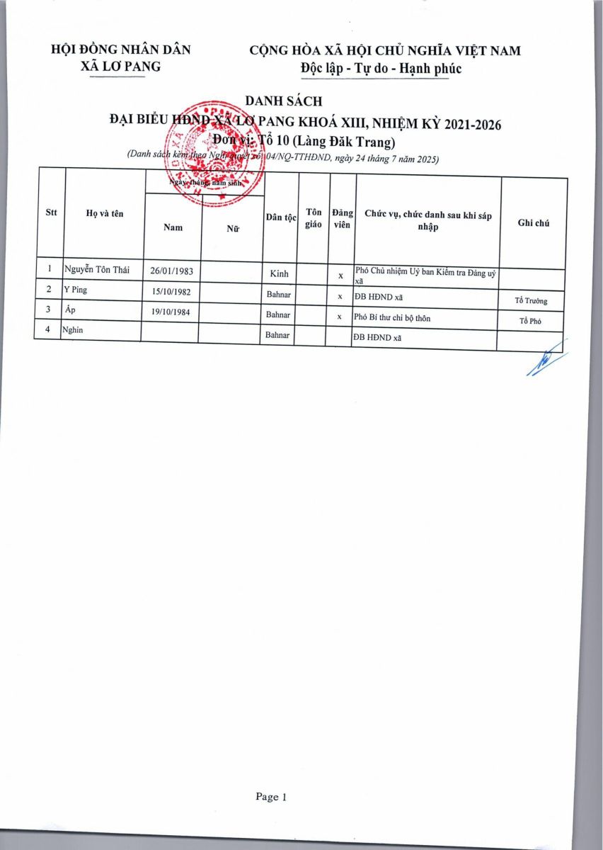 Nghị quyết số 04/NQ-TTHĐND ngày 24 tháng 7 năm 2025 của Hội đồng nhân dân xã Lơ Pang về việc thành lập tổ đại biểu HĐND xã và chỉ định Tổ trưởng, Tổ phó của Tổ đại biểu HĐND xã khóa XIII, nhiệm kỳ 2021-2026