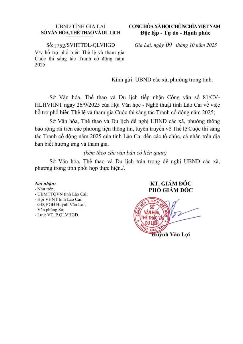 Thông báo số 86/TB-SVHTTDL ngày 15 tháng 10 năm 2025 của Sở văn hóa, thể thao và du lịch tỉnh Gia Lai về việc Công khai địa chỉ tiếp nhận phản ánh, kiến nghị về quy định hành chính