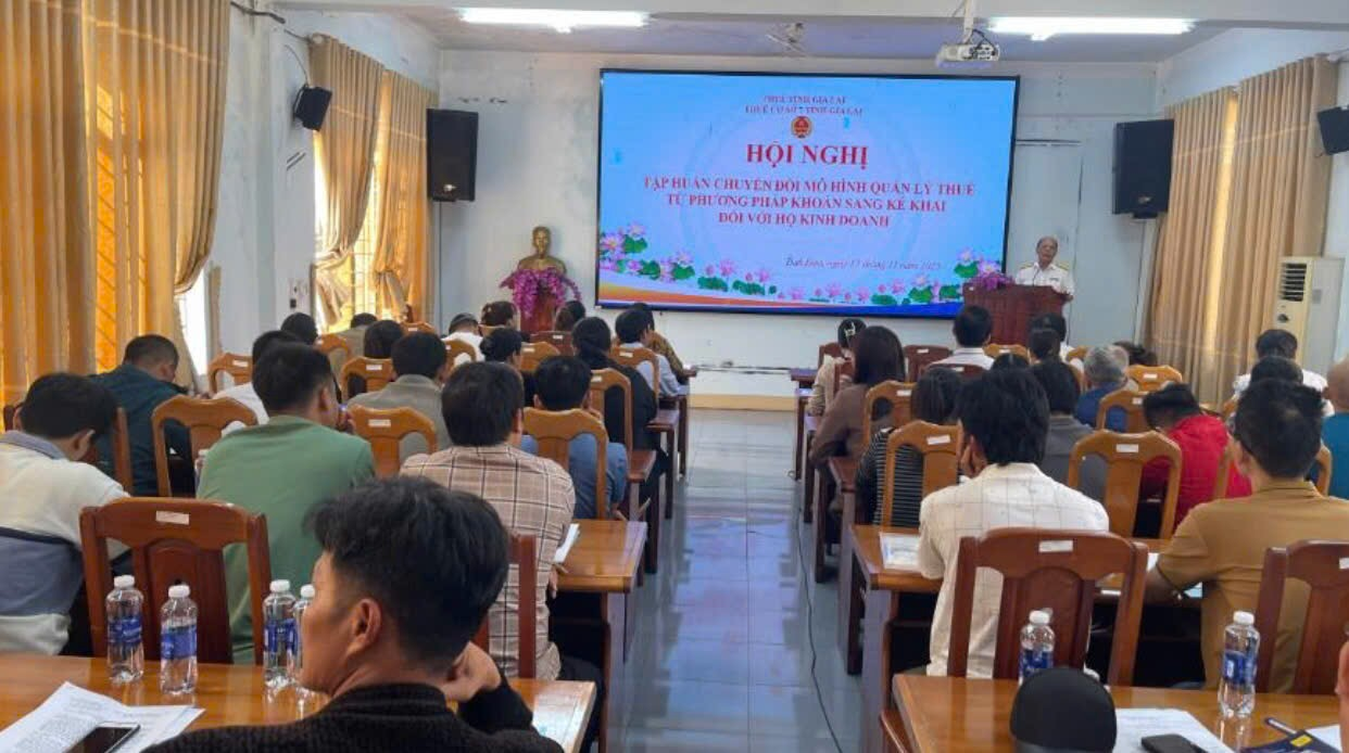 Thực hiện chủ trương của Đảng và Nhà nước về xóa bỏ hình thức thuế khoán từ ngày 01/01/2026, ngày 12/11/2025 Thuế cơ sở 7 tỉnh Gia Lai đã tổ chức Hội nghị tập huấn triển khai Đề án đổi mới mô hình quản lý thuế từ phương pháp khoán sang kê khai đến các hộ kinh doanh trên địa bàn 10 xã do cơ quan thuế quản lý.
